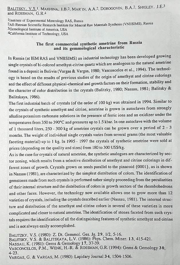 240) Hebert LB, Rossman GR (2008) Greenish quartz found at the Thunder Bay Amethyst Mine Panorama, Thunder Bay, Ontario, Canada. Canadian Mineralogist, 46, 111-124.233) Laurs BM, Simmons WB, Rossman GR, Fritz EA, Kouvila JI, Ancar B, Falster AU (2007) Yellow Mn-rich tourmaline from the Canary Mining Area, Zambia. Gems and Gemology 43, 314-331.